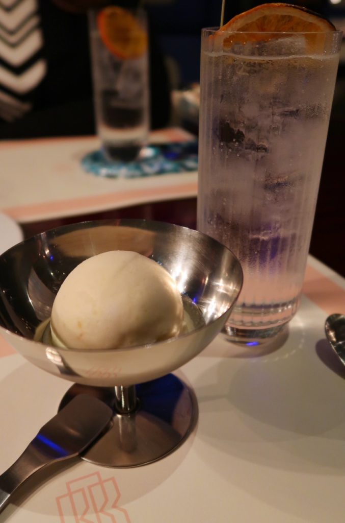 The Gelato-Sorbet is paired with the incredibly refreshing 1910 BOMBAY & ORRIS G&T.